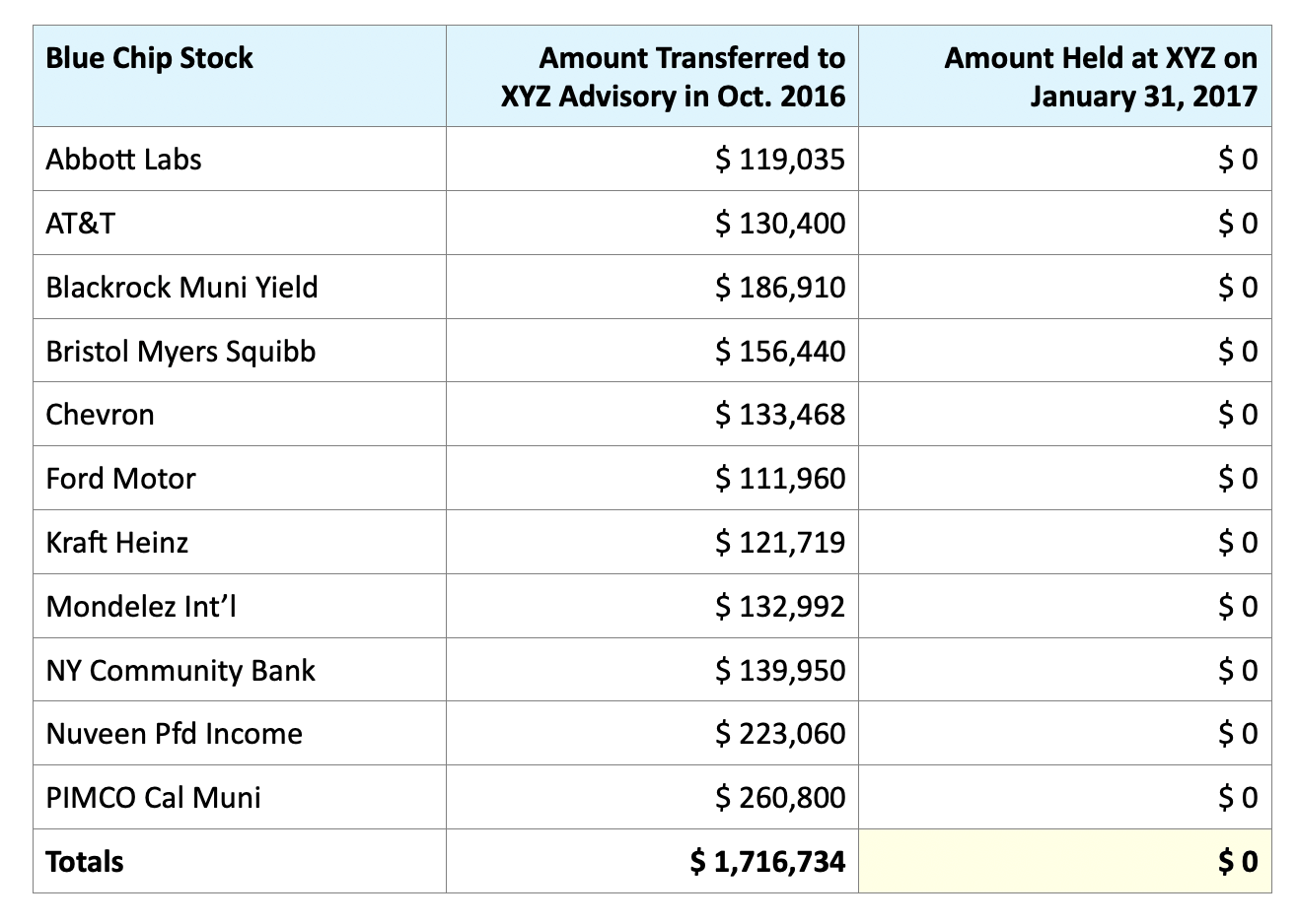 XYZ Wealth Management’s Late-2016 Demolition of Mrs. Sohn’s Blue-Chip Portfolio